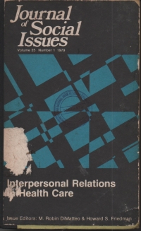 JOURNAL OF SOCIAL ISSUES - interpersonal relations in health care |