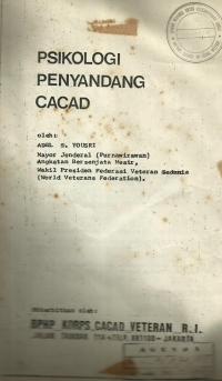 Buku ini membahas tentang psikologi penyandang cacat yang terbagi menjadi dua bagian yaitu: Pertama Penyebab cacat dan pengaruhnya terhadap keadaan psikis penyandang cacat dan yang kedua yaitu Faktor-faktor yang memengaruhi keadaan jiwa penyandang cacat. |