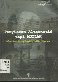 Buku ini membahas mengenai bagaimana alternatif Penyiaran Publik dan Komunitas untuk kepentingan publik Indonesia. Effendi Gazali menulis buku ini bermaksud memberikan kerangka bagaimana alternatif terhadap penyiaran pemerintah dan penyaiaran pasar yang mungkin bisa dijalankan dengan efektif di Indonesia. |